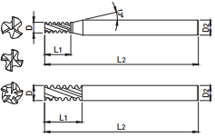 | EDP. No. | D | L1 | L2 | D2 | FLUTE |