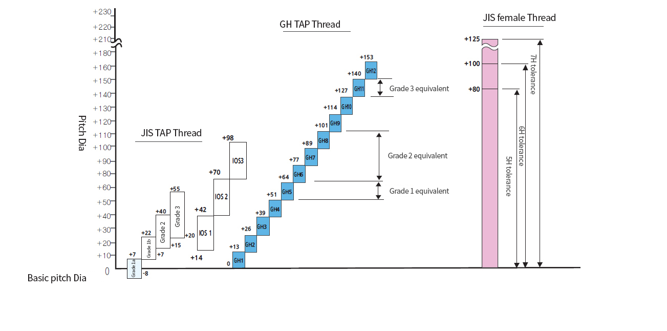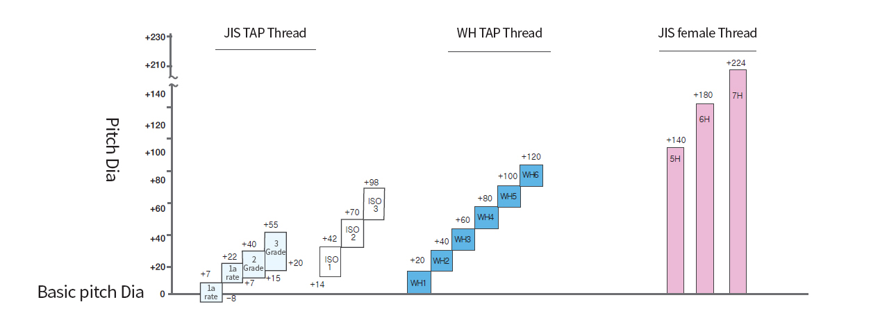 The non-groove tab (roll tab) requires strict bottom diameter management, unlike the cutting tab. Also the female screw is machined by plastic deformation, and the degree of strict tap thread is applied. WIDIN adopted stepwise thread of 12.7 μm (0.0005) tolerance.