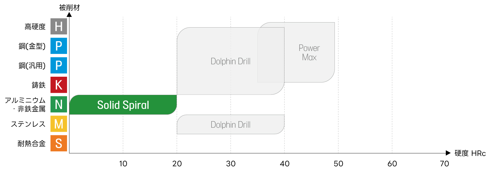 銅、アルミニウム、アルミニウム合金およびその他の 非鉄金属系被削材の加工に向いている