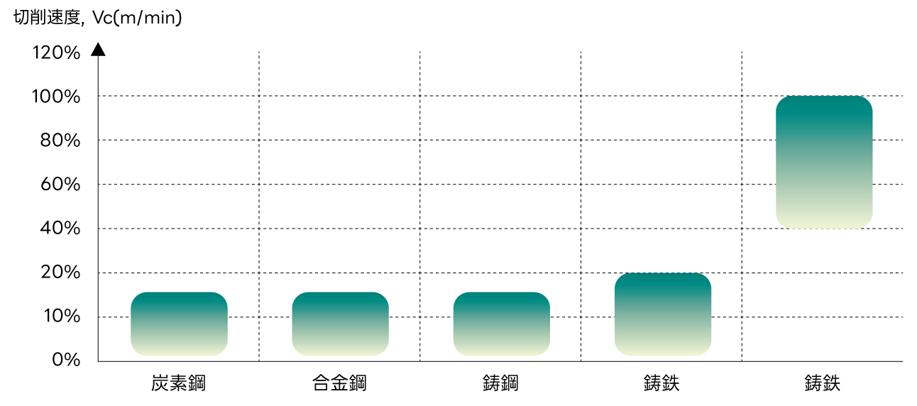 炭素鋼、合金鋼およびプリハードン鋼、銅、鋳鉄、アルミニウムなどの被削材加工に適しています
