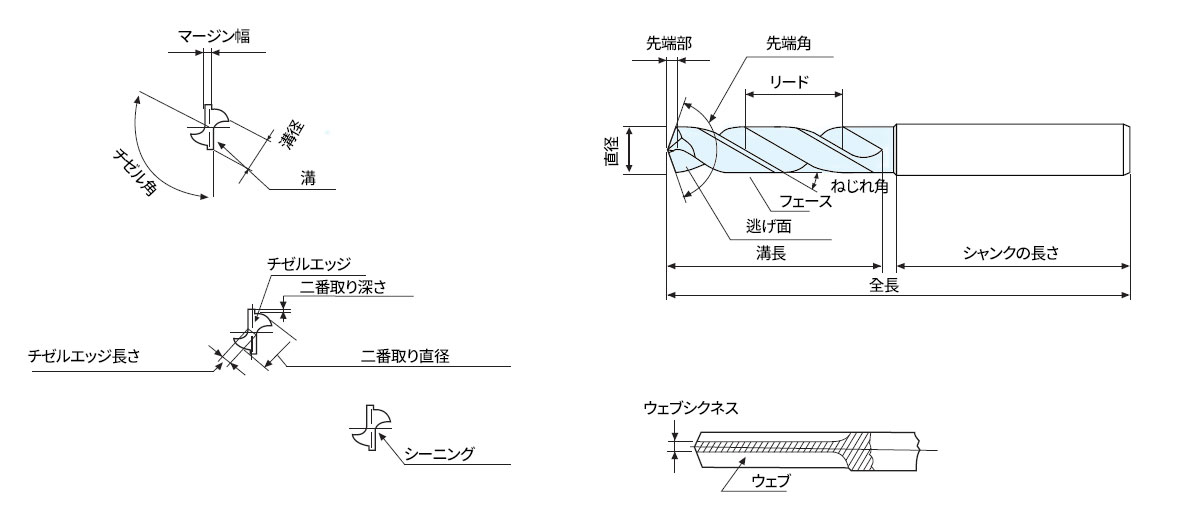 | 先端角 | ねじれ角 | リップリリーフアングル | |