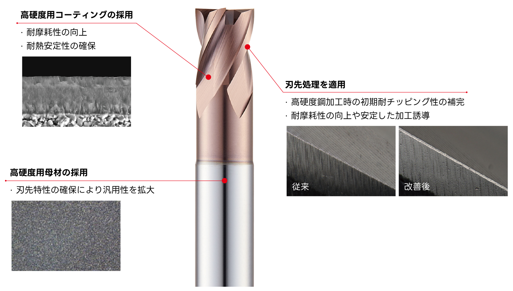 刃径およびラジアスに高精度公差を適用し、精密加工に最適