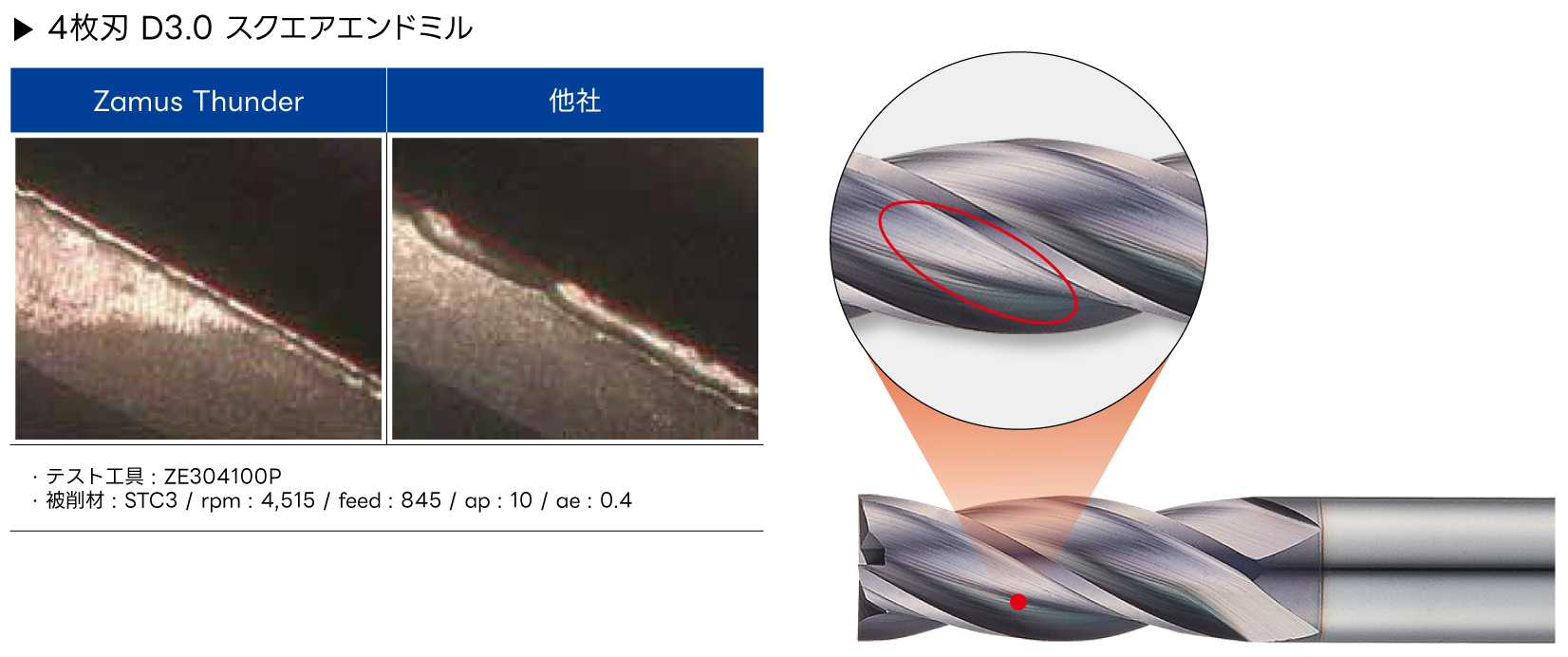 高靭性素材の採用で、耐チッピング性および加工性の向上
