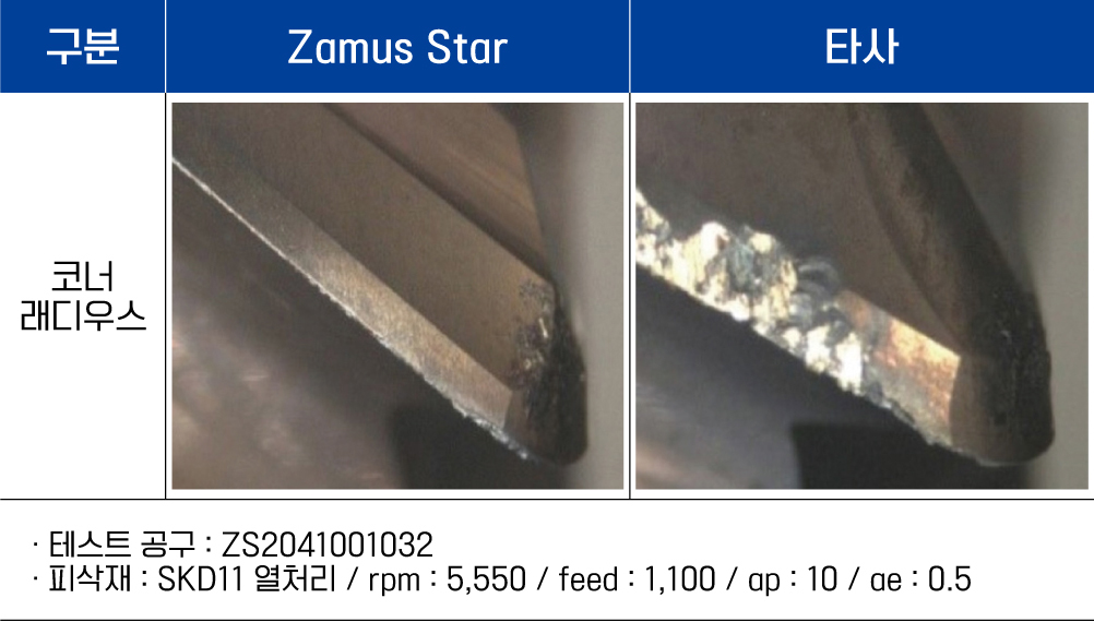 - 고경도 피삭재의 고속가공에 적합한 인선부 설계로 안정적인 성능