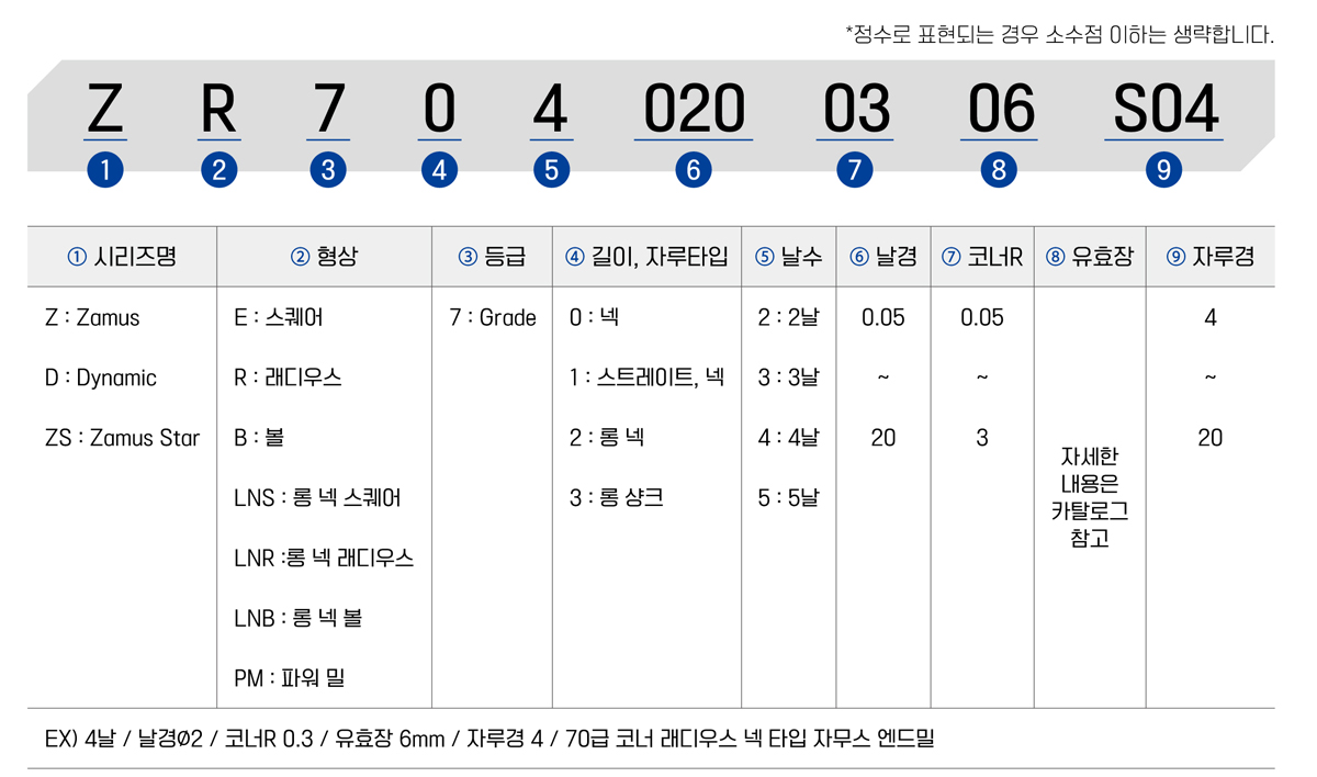 - 열처리강 및 합금강, 탄소강 등의 고경도 피삭재 (추천 : HRc 50 ~ 70)의 고속가공에 적합