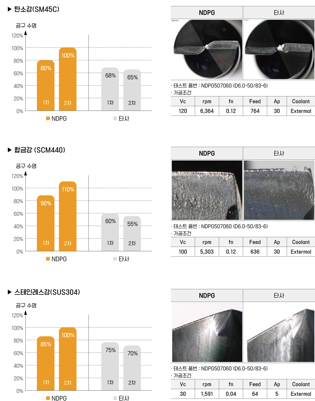 - AlCrN Base 박막을 적용하여 내마모성-윤활성 향상